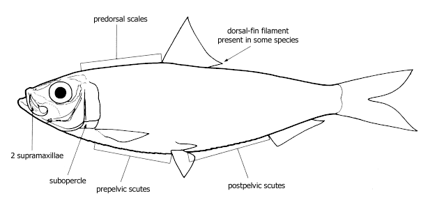 | Key to the subfamilies of herrings (also, sardines, shads, sprats, pilchards, and menhadens) (Clupeidae) occuring in the Western Central Pacific. |