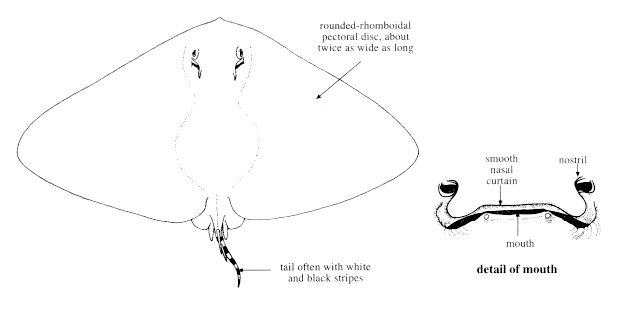 | Compagno, L.J.V. and P.R. Last 1999. Gymnuridae. Butterfly rays. p. 1506-1510. In K.E. Carpenter and V.H. Niem (eds.) FAO species identification guide for fishery purposes. The living marine resources of the Western Central Pacific. Vol. 3. Batoid fishes, chimaeras and bony fishes. Part 1 (Elopidae to Linophrynidae). FAO, Rome. Ref No [39767] Key No. [119] |